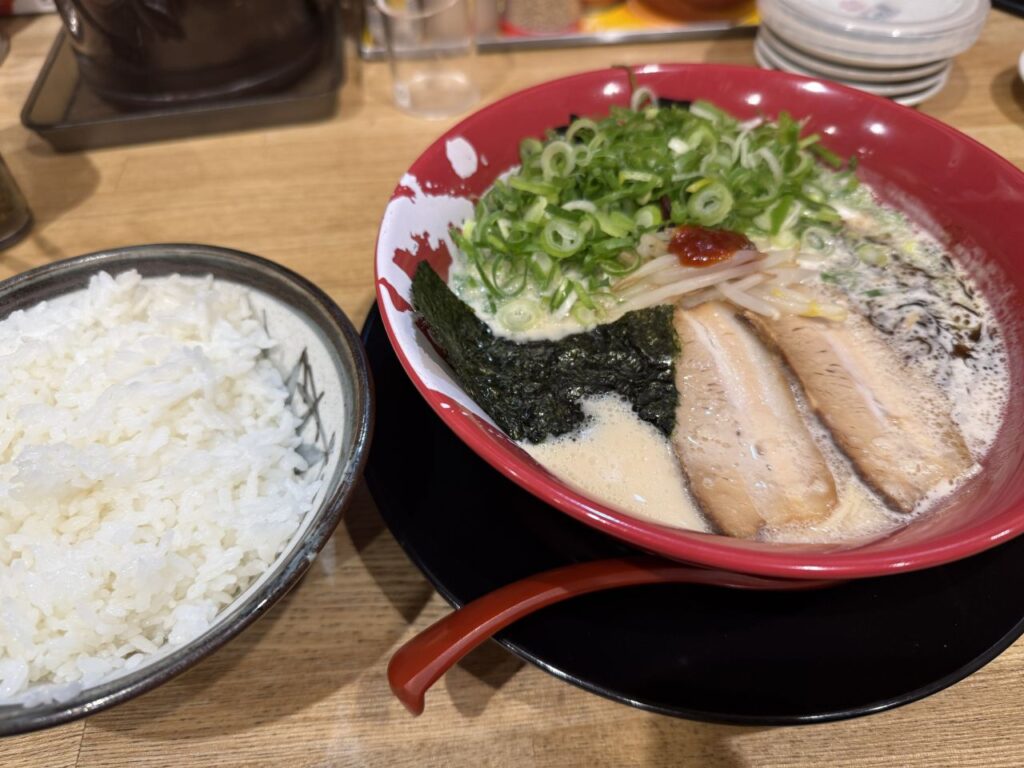 青ねぎ牛白湯ラーメンとライス大盛りが到着