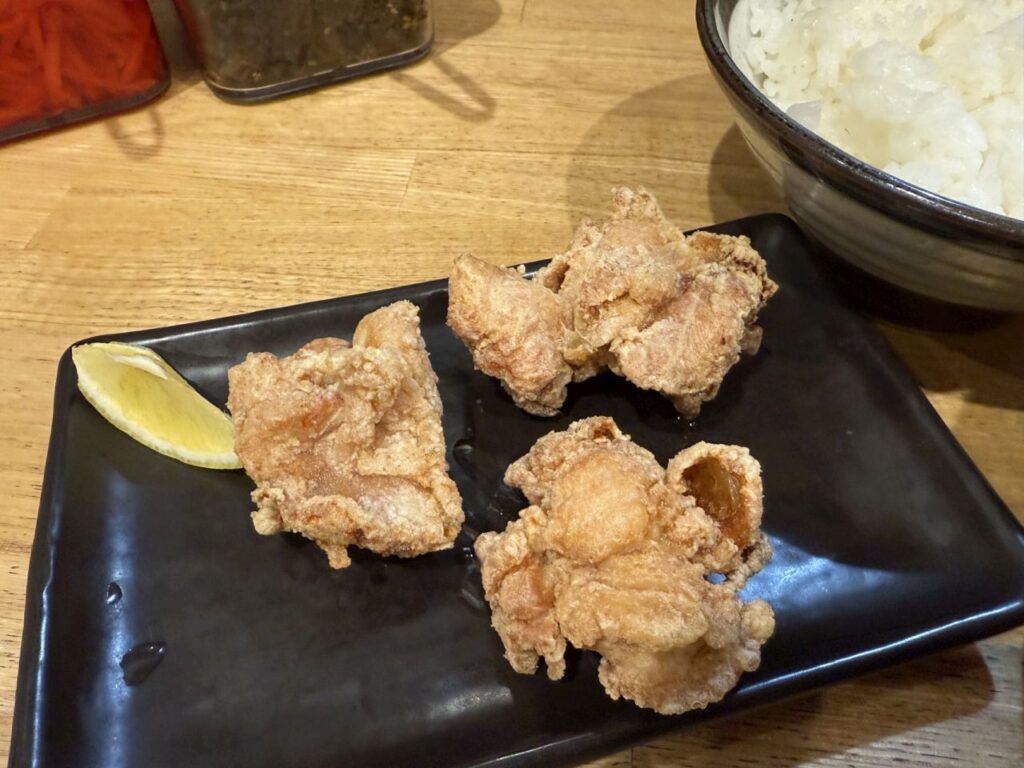 から揚げ3つ、ご飯大盛りのセットを注文